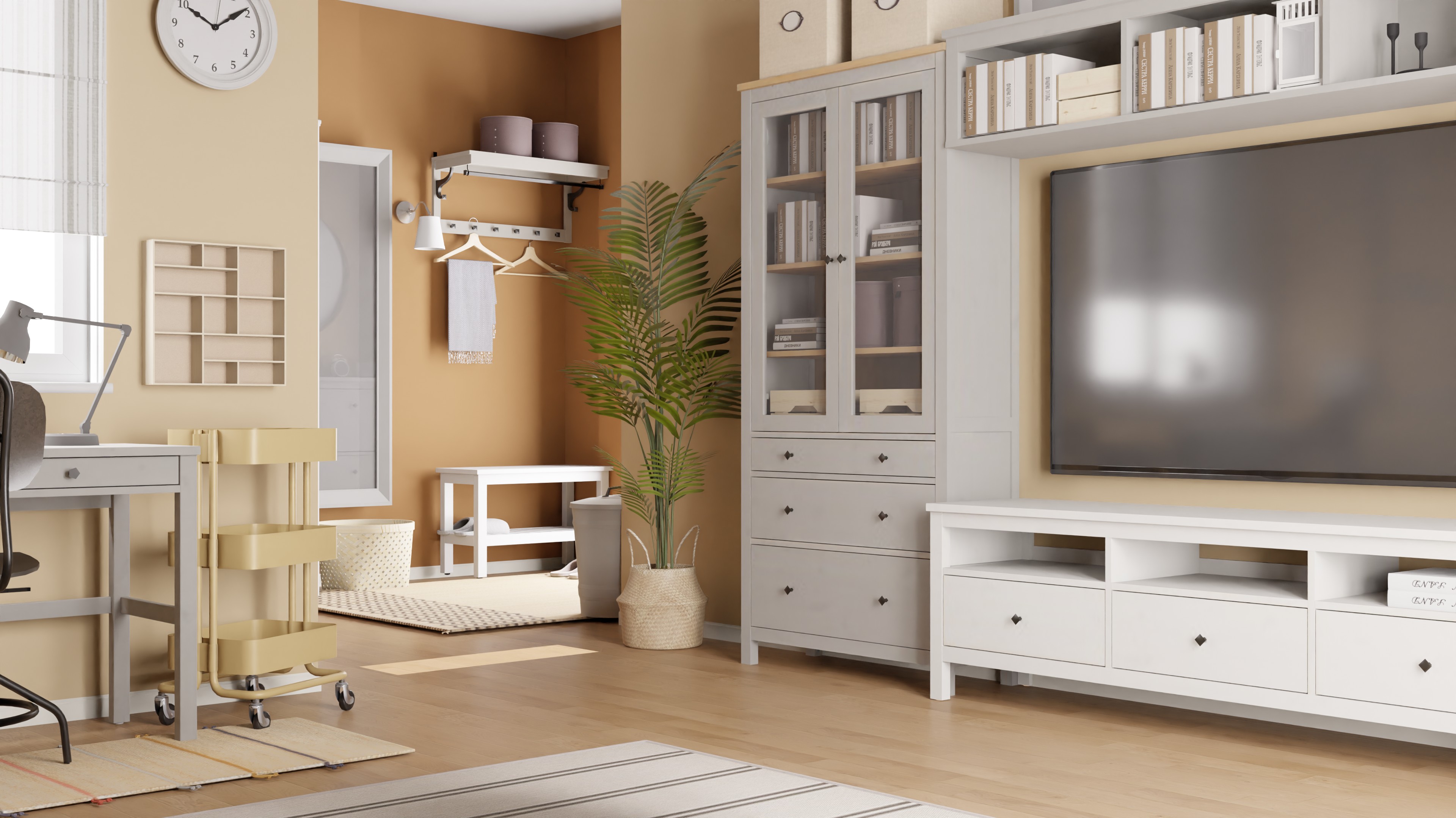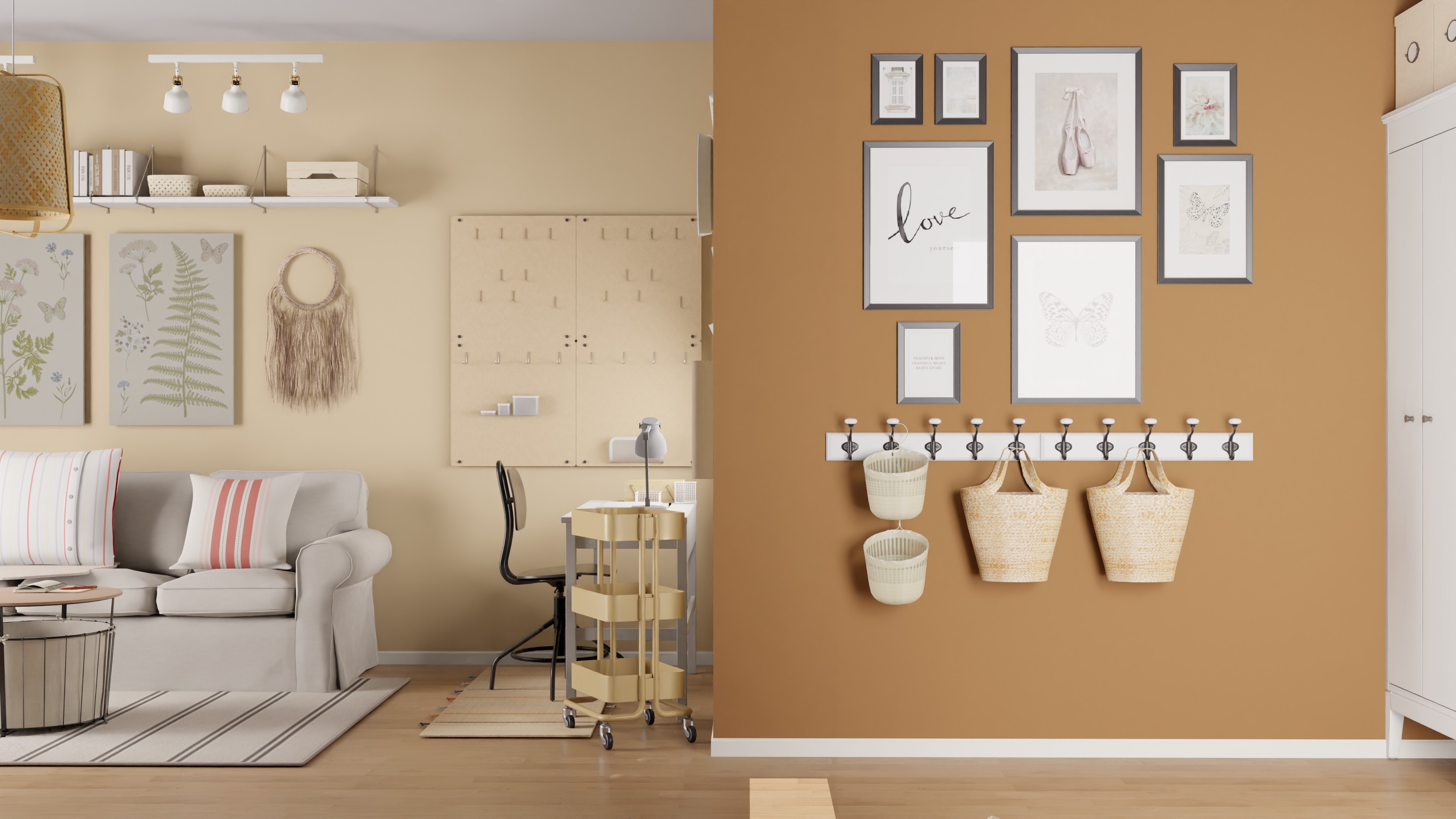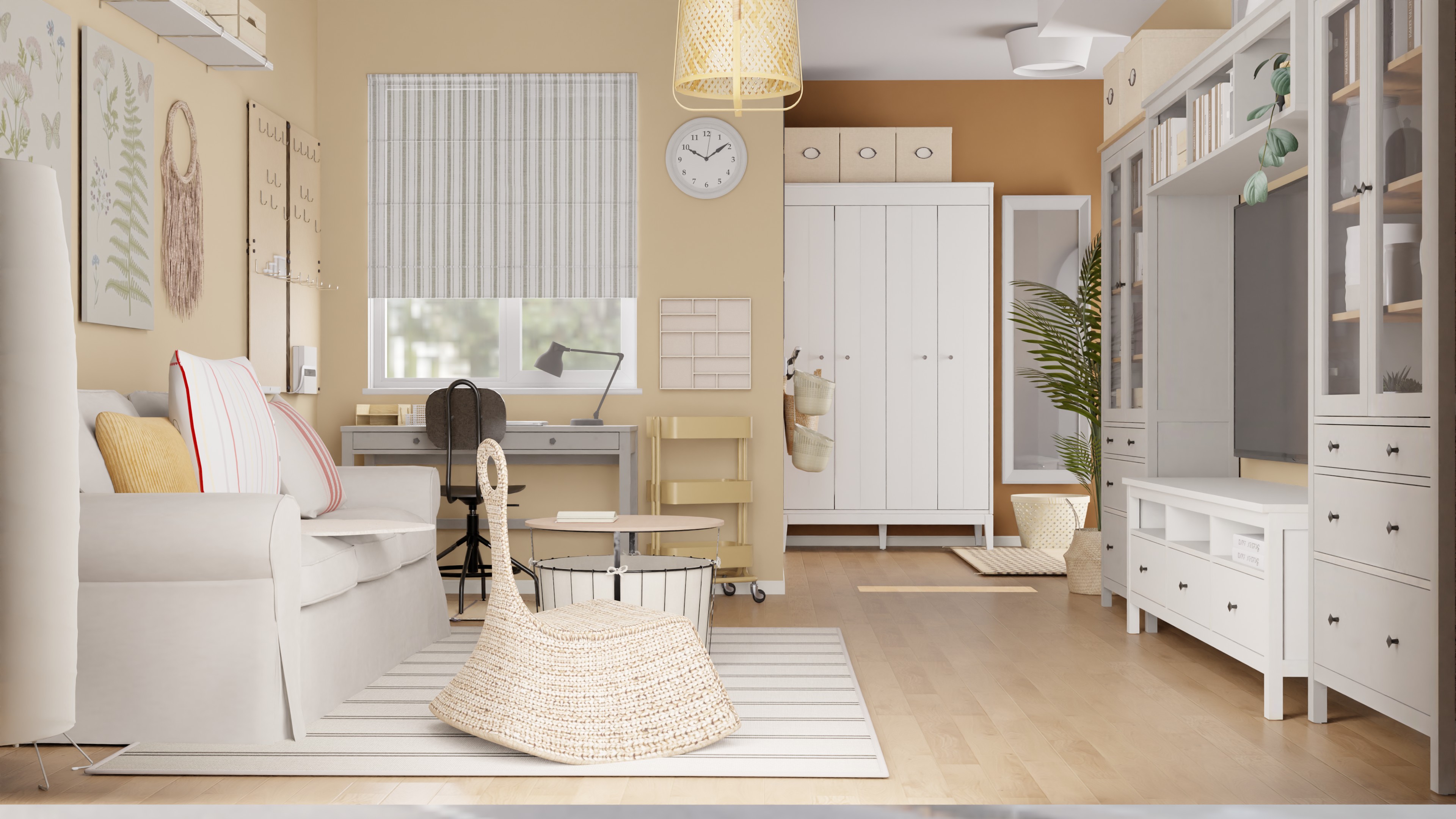 愛做手工的夫妻需要盡可能多的收納空間。斯堪的納維亞傳統(tǒng)風(fēng)格的家具輕便、實用且質(zhì)樸,又帶有現(xiàn)代宜家的風(fēng)格。實用、簡單、精巧、民俗。美觀的家具提供了豐富的儲物空間。